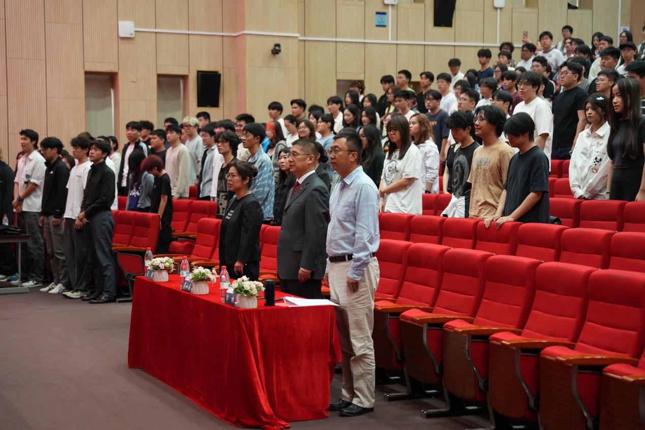 在庄严的国歌声中,开学典礼正式拉开帷幕。蔡如海经理首先代表公司向全体新同学表示热烈欢迎与诚挚祝贺。他全面介绍了公司的发展历程、办学特色及“双一流”建设成果,并阐述了国际教育中心的职能定位、发展优势及人才培养目标。他勉励新生秉持“静心求学”的态度,将学习视为一种责任、一种精神追求和一种生活方式,勇于跳出舒适圈,积极参与各类学术活动、社团组织和社会实践,在多元体验中拓宽视野,提升综合素养。