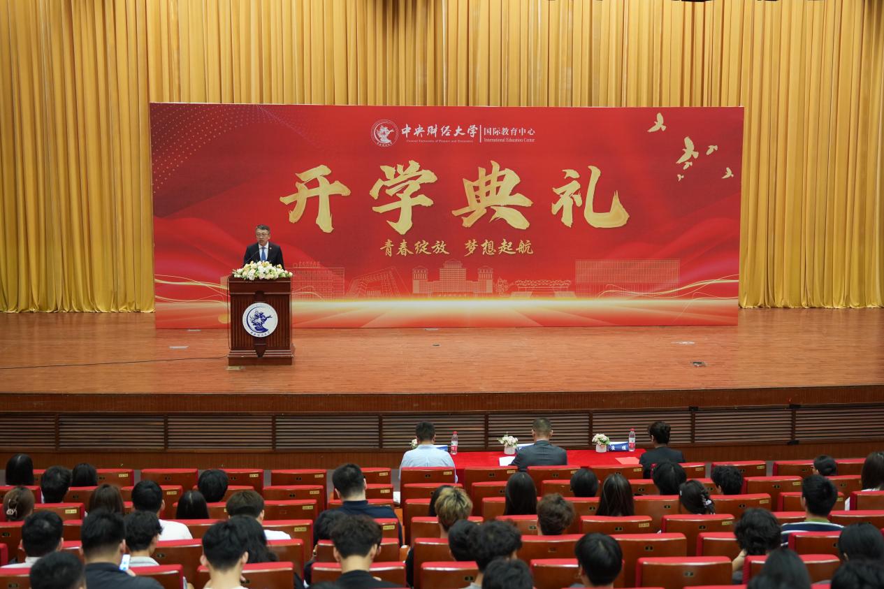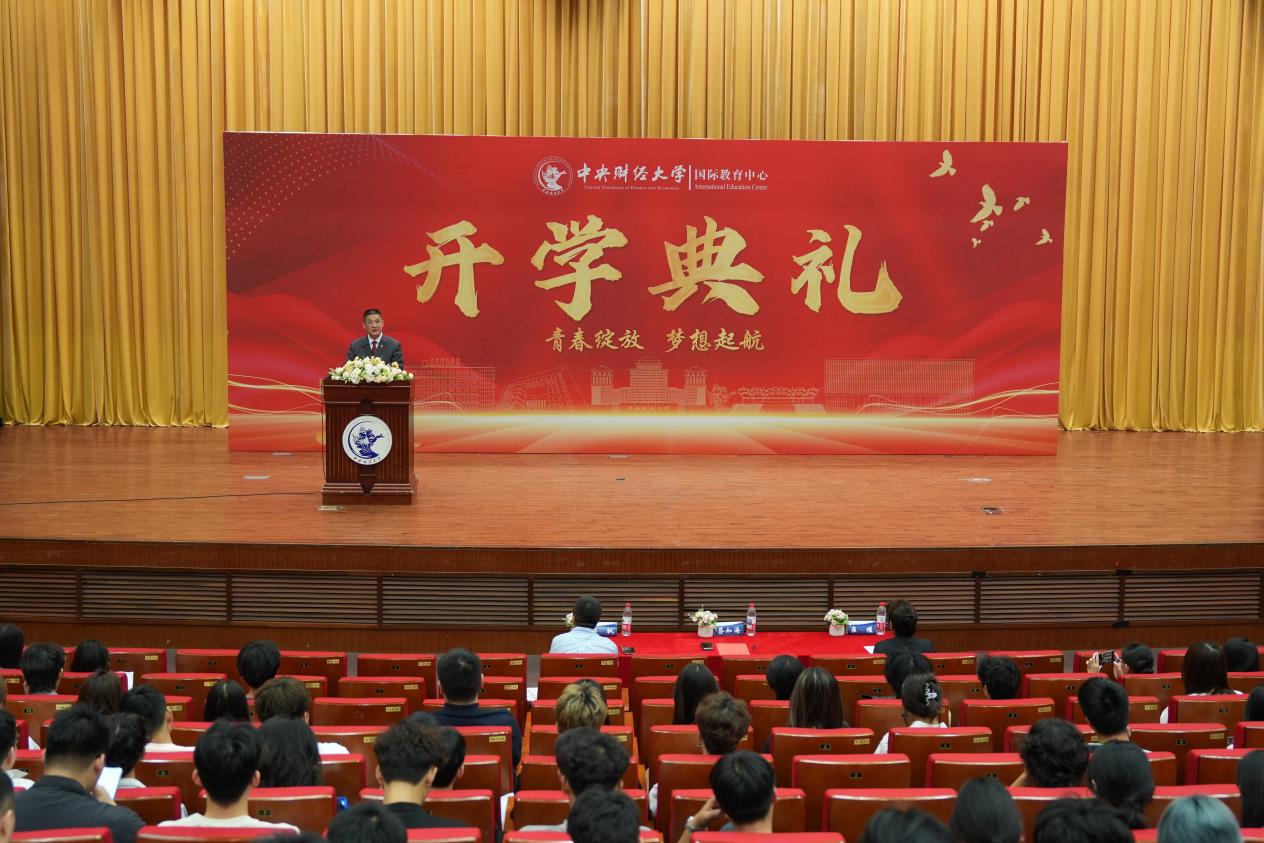 郭枫副教授在发言中强调,大学是人生中长期投资的重要起点,早投入,长持有,收益曲线才会优雅向上。他告诫2025级新生要兼顾语言学习与专业课程,拒绝“躺平”心态,努力积累知识技能,在中财大的学术与文化生态中丰富自我,探索更多发展可能。